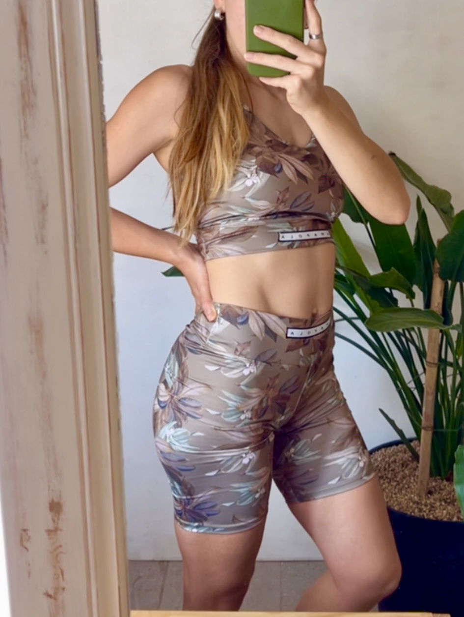 Biker de la línea muestras, en estampa botánica verde musgo.