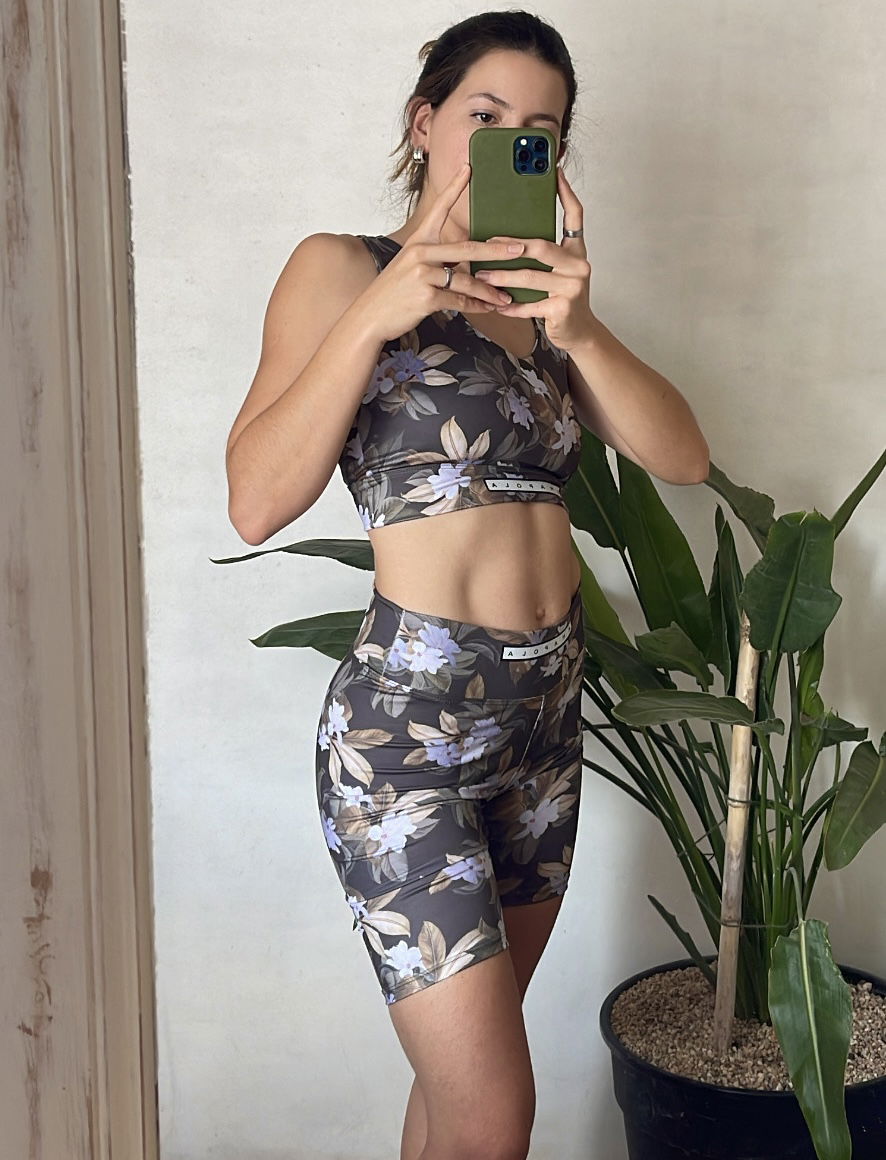 Biker de la línea muestras, en estampa flores blancas.